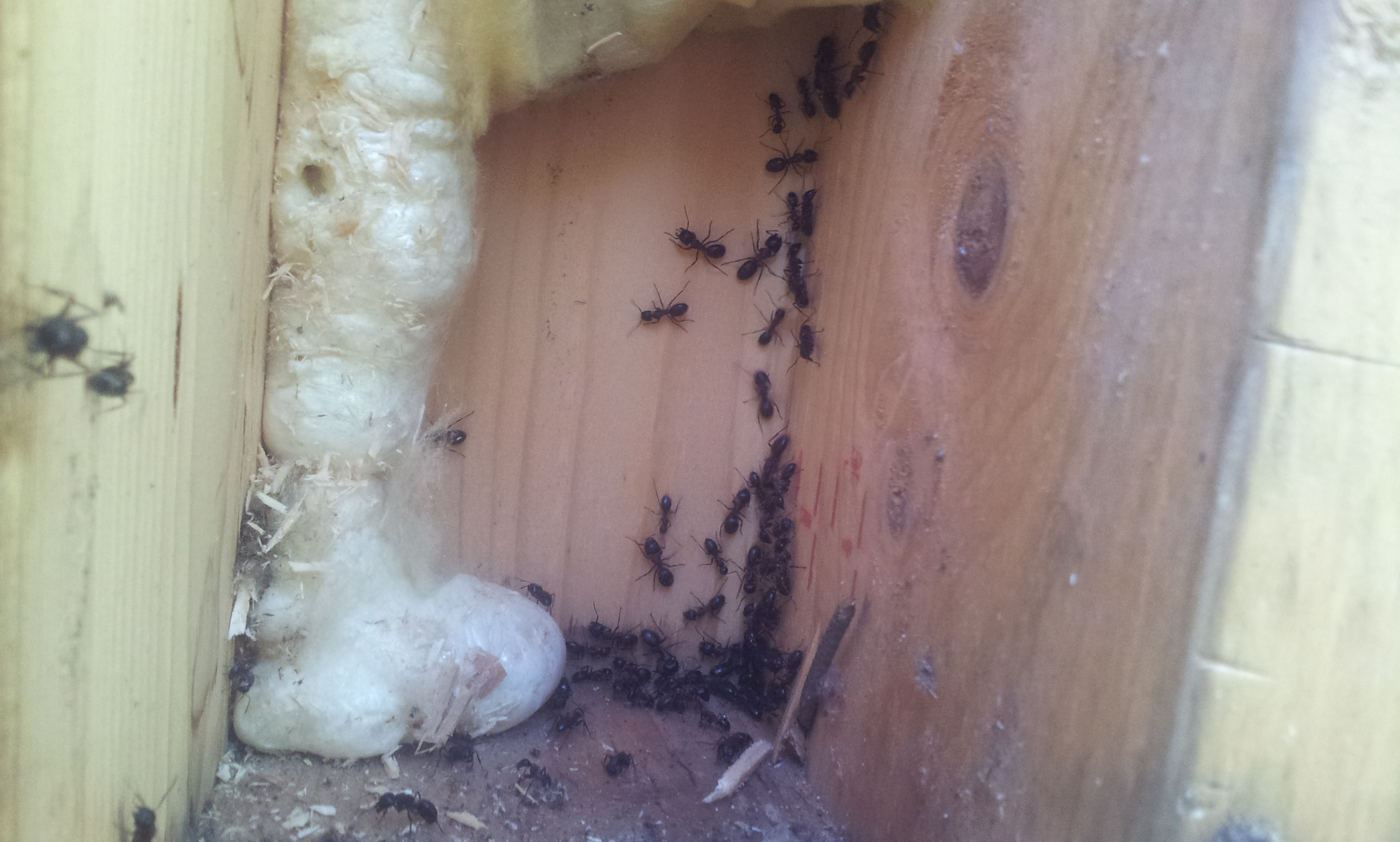 Videre inspeksjon avdekket høy aktivitet av stokkmaur og behandlingen ble fullført.