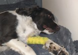 Etter et ublidt møte med huggorm er Moa «sykemeldt». Det blir derfor ingen hundesøk de neste 14 dager